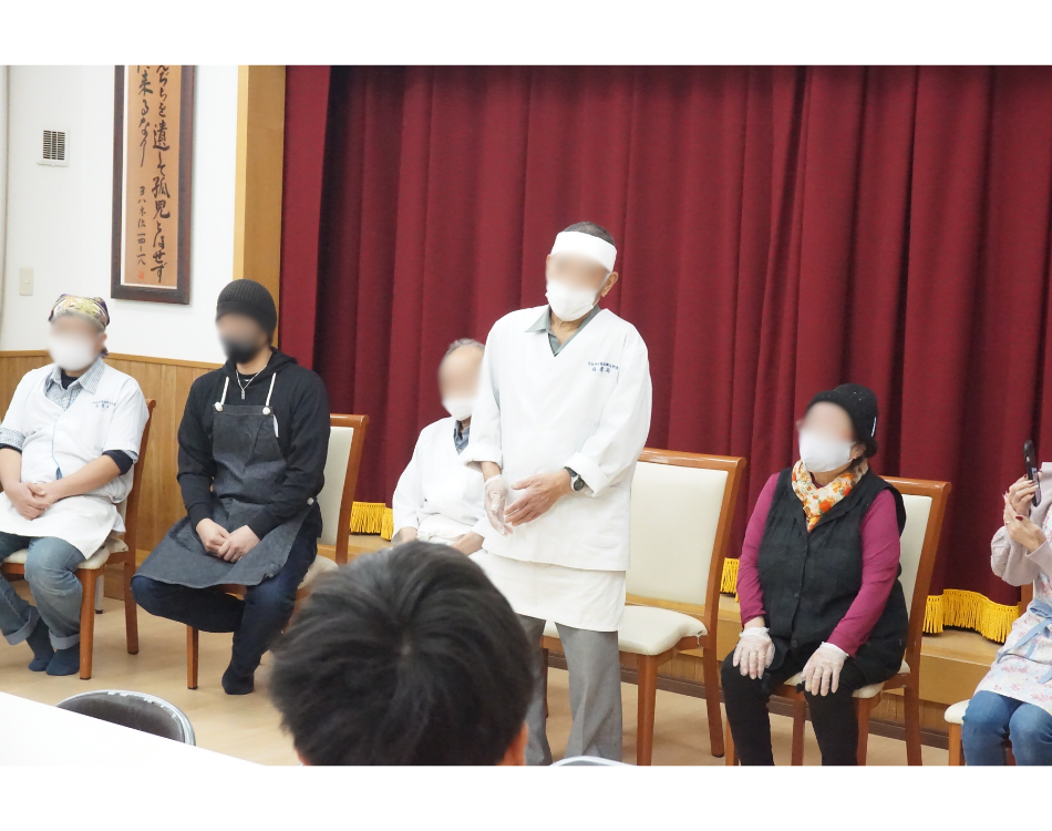 また1968(昭和43)年より続く「ラーメン奉仕」は1999(平成11)年の今治屋台組合様の解散に伴い、有志で結成した五十路会様へと引き継がれました。以来、「五十路会ラーメン奉仕」としては27年目を迎えています。そして今年、長年にわたりあすなろ学園にラーメンの奉仕をしてくださった鈴江満会長がご退任されることとなり、これまでの感謝の気持ちを込めて、子どもたちと職員一同からお礼の色紙をお渡ししました。