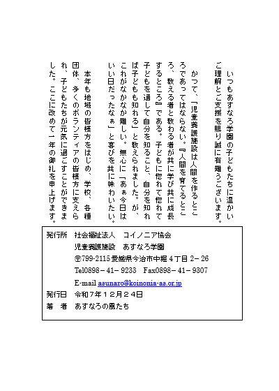 Copyright ©社会福祉法人コイノニア協会 児童養護施設あすなろ学園.