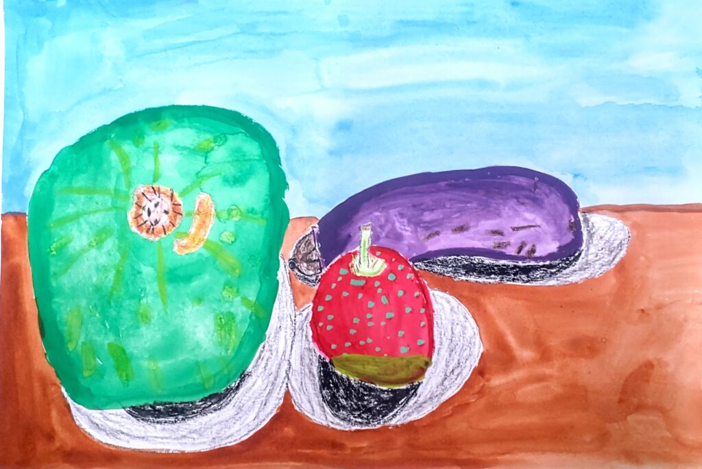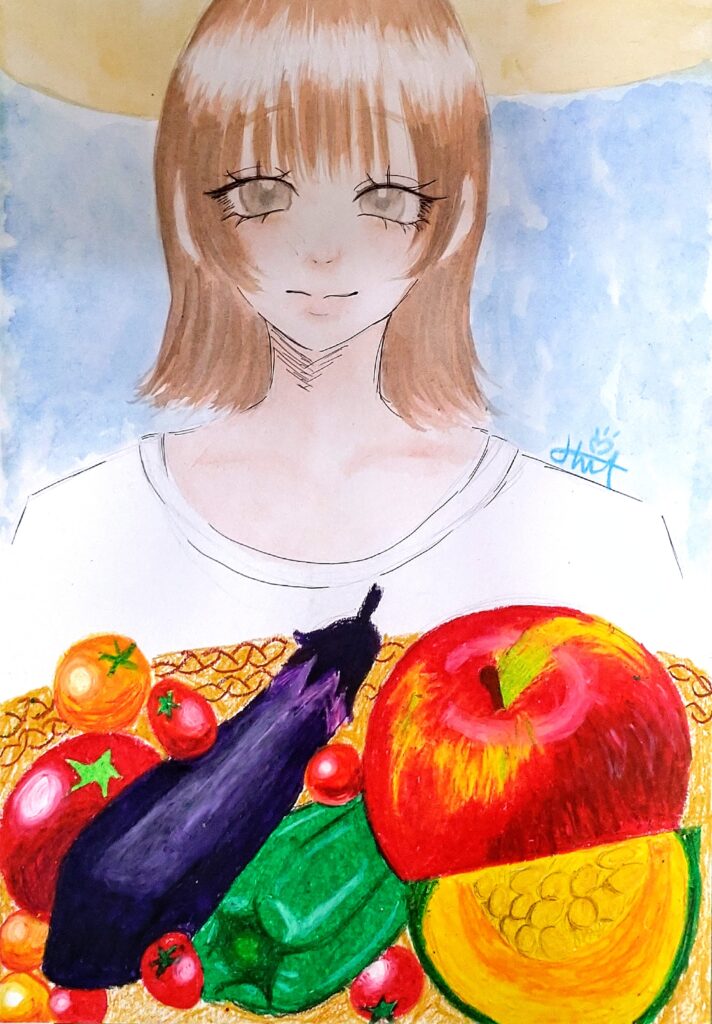▲「そらの上の夏やさい」小3女子